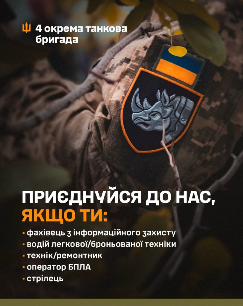 4-та окрема важка механізована бригада запрошує до своїх лав